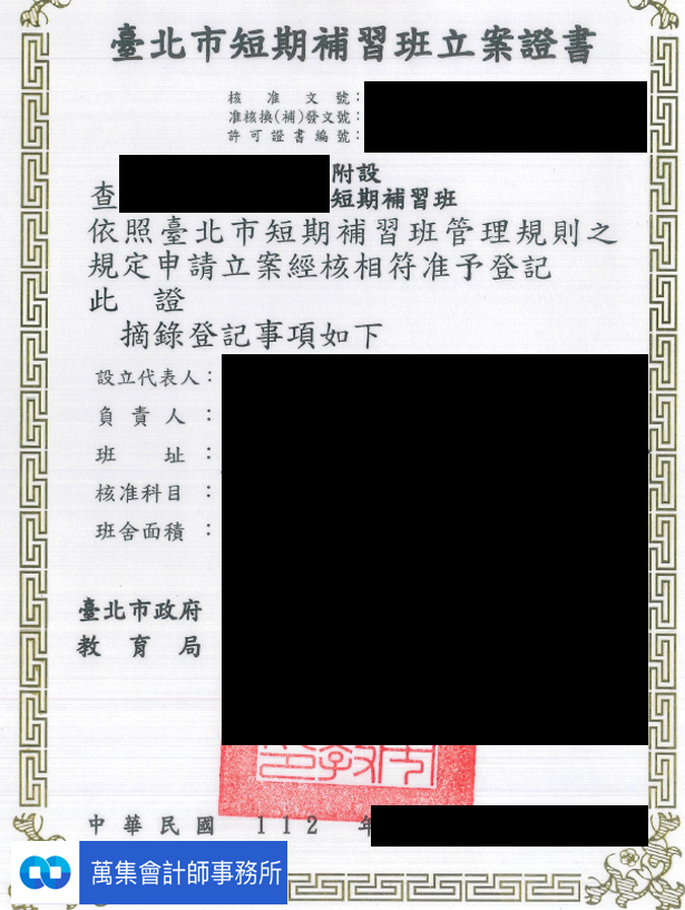 工商登記, 公司登記, 會計處理, 補習班業, 補習班稅務, 補習班記帳