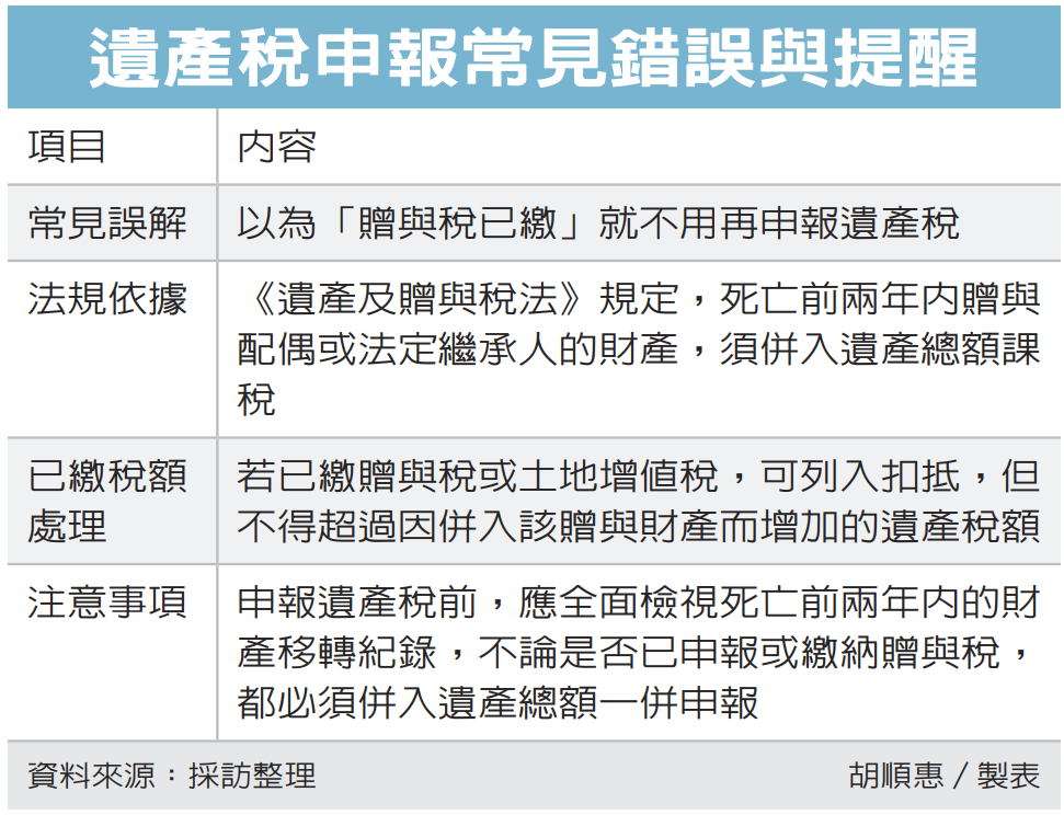國稅局進一步解釋,許多繼承人誤以為「贈與稅已繳」等於結束,結果忽略相關規定,最後不但要補稅,還得支付高額罰鍰,得不償失。