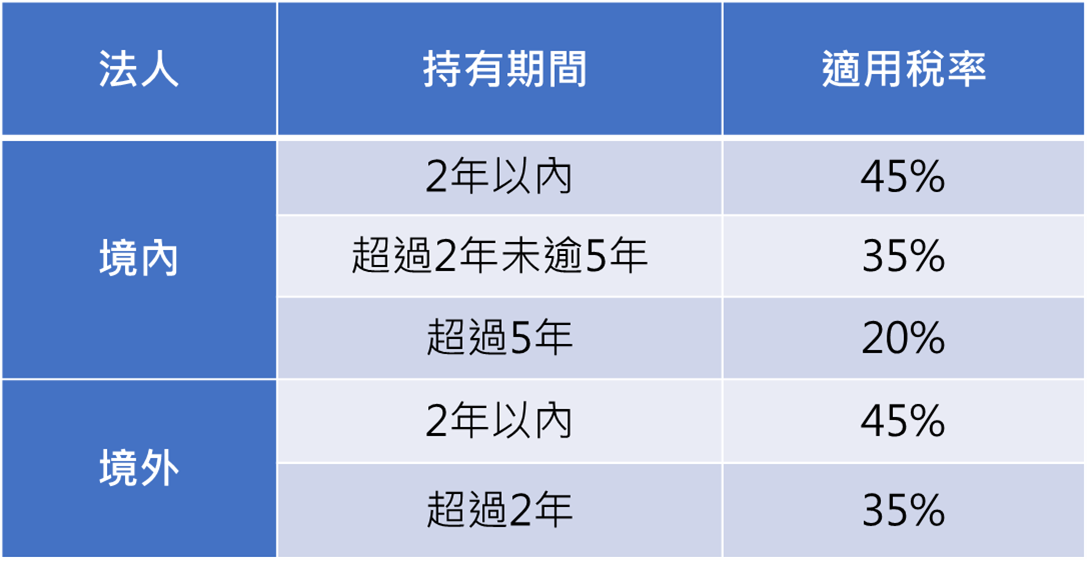 不論是以個人或是法人名義出售房屋,同樣都會依照持有期間按差別稅率「分開計稅」。