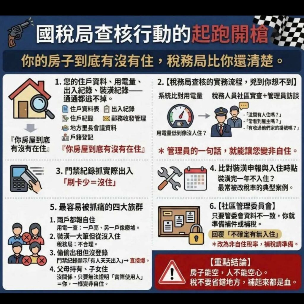 以下分享,除了自住的軌跡,如水電費,ETC等,現在,國稅局也會多方管道稽核,例如:函文給管委會。