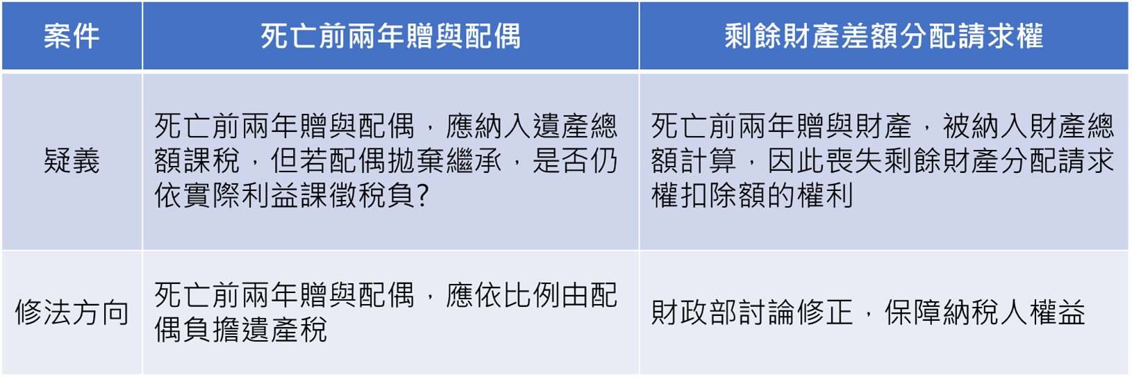 遺產稅法死亡前兩年贈與、剩餘財產分配請求權違憲,須2年內修法