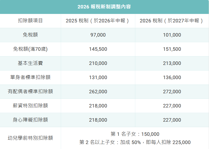 2026報稅「綜所稅」減稅了!免稅額10.1萬、單身標準扣除13.6萬、薪資扣除額22.7萬、稅率級距調整一次看;遺贈稅不變!