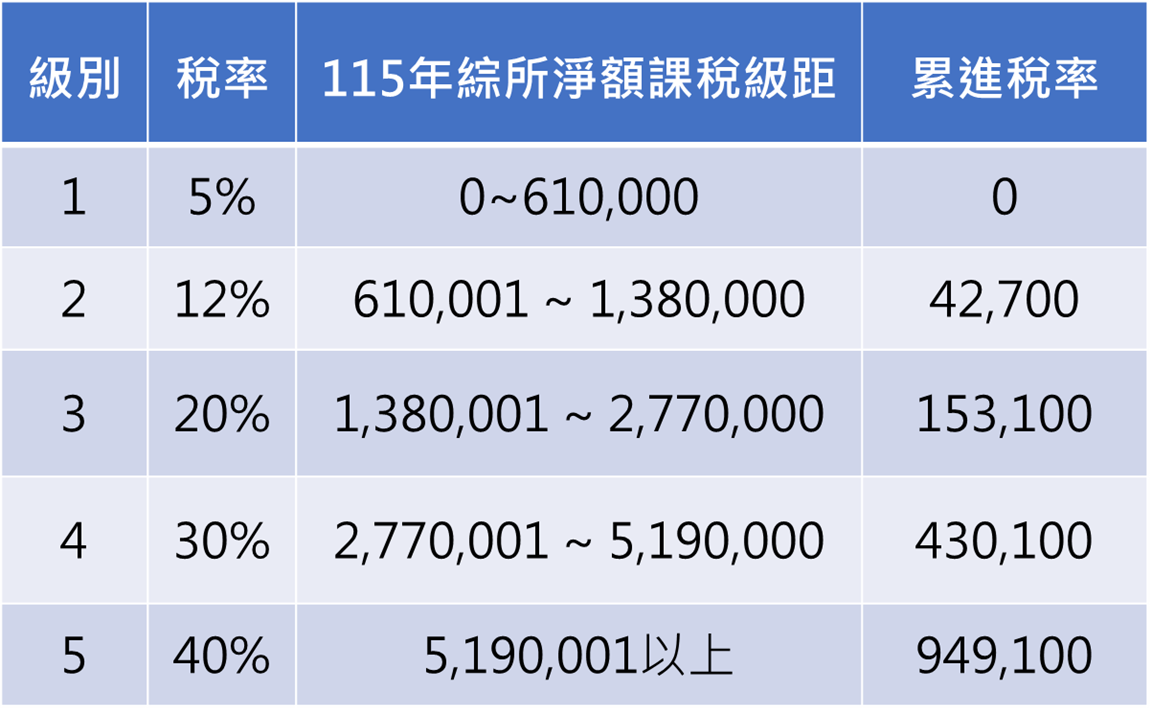 三、調高115年度綜合所得稅免稅額及相關扣除額,民眾在116年5月申報115年度綜合所得稅適用: