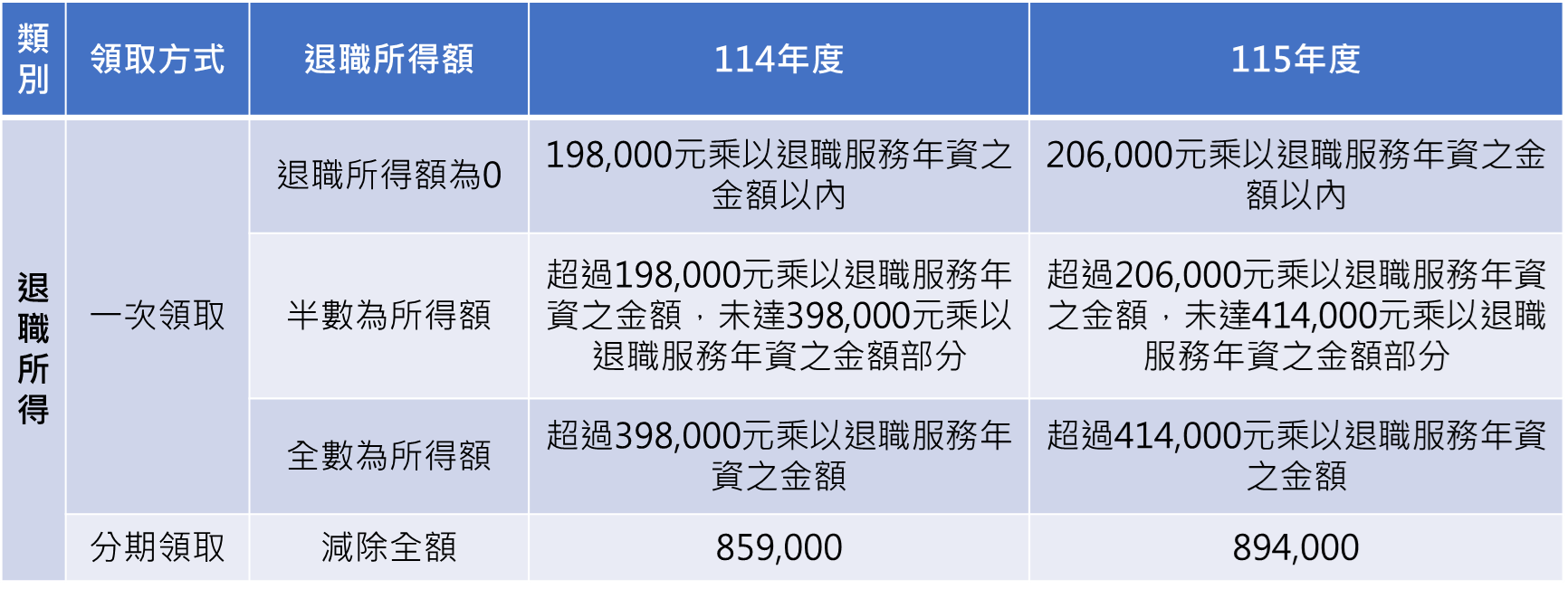 (四)課稅級距及計算退職所得定額免稅之金額亦分別按消費者物價指數上漲幅度調整。
