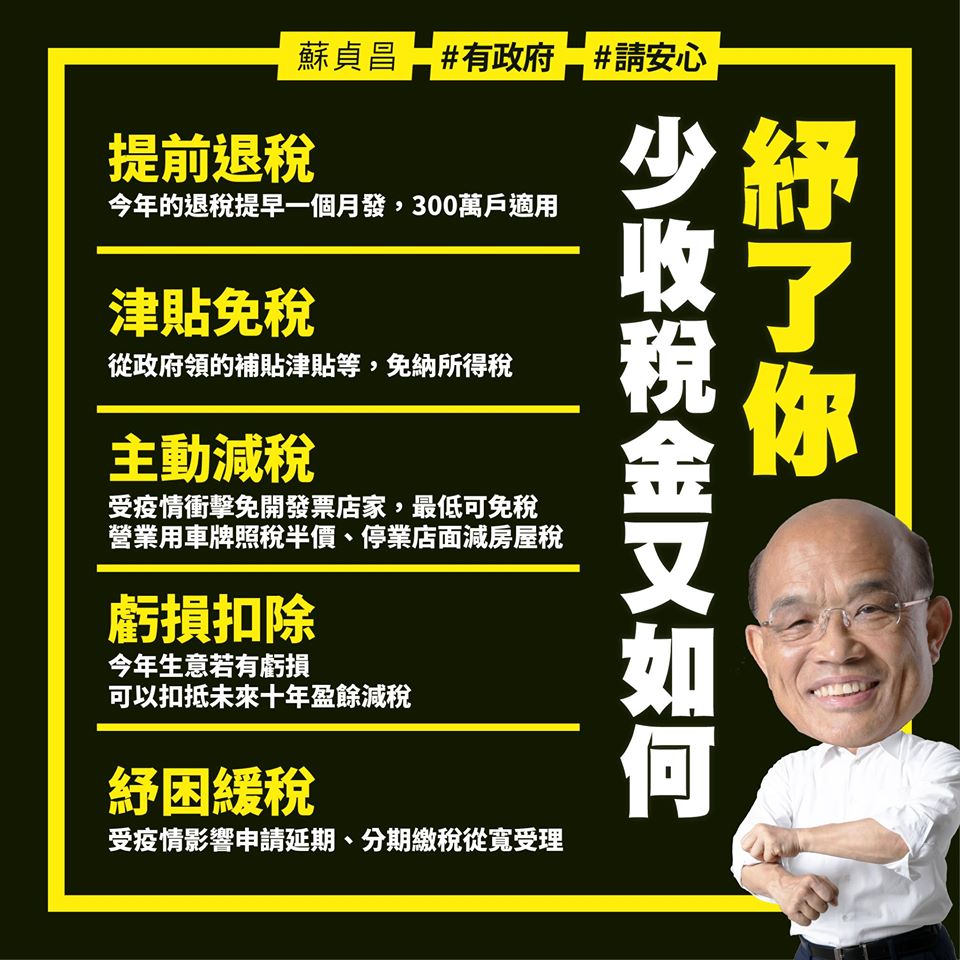 03 4 月 個人綜所稅, 新冠肺炎紓困方案, 營利事業所得稅, 營業稅, 特種貨物及勞務稅(奢侈稅), 稅務法規, 萬集快訊, 貨物稅 疫情下政府有哪些紓困方案?-申請稅捐延期或是分期繳納(1之3) Posted by gh 2020-04-22 政府提出紓困振興方案,其中與營利事業直接最相關的,是稅款可以申請延期或是分期繳納。 病毒來勢匈匈,疫情日益嚴厲,會計師告訴您政府振興紓困方案,克服當前危機! 施行期間:自 109年1月15日至110年6月30日 紓困方案適用稅目 國稅(營利事業... Continue reading